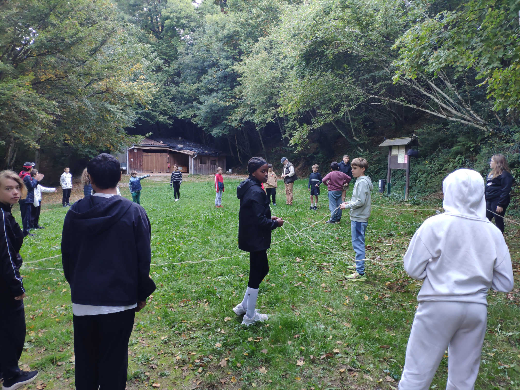 Dès leur arrivée, les élèves ont participé à un jeu coopératif : tous étaient reliés à une corde, lorsque l’animateur a tiré dessus, tous les élèves se sont déplacés. Cette activité leur a permis de comprendre que tous les êtres vivants sont liés entre eux et qu’un évènement particulier peut impacter l’ensemble.
