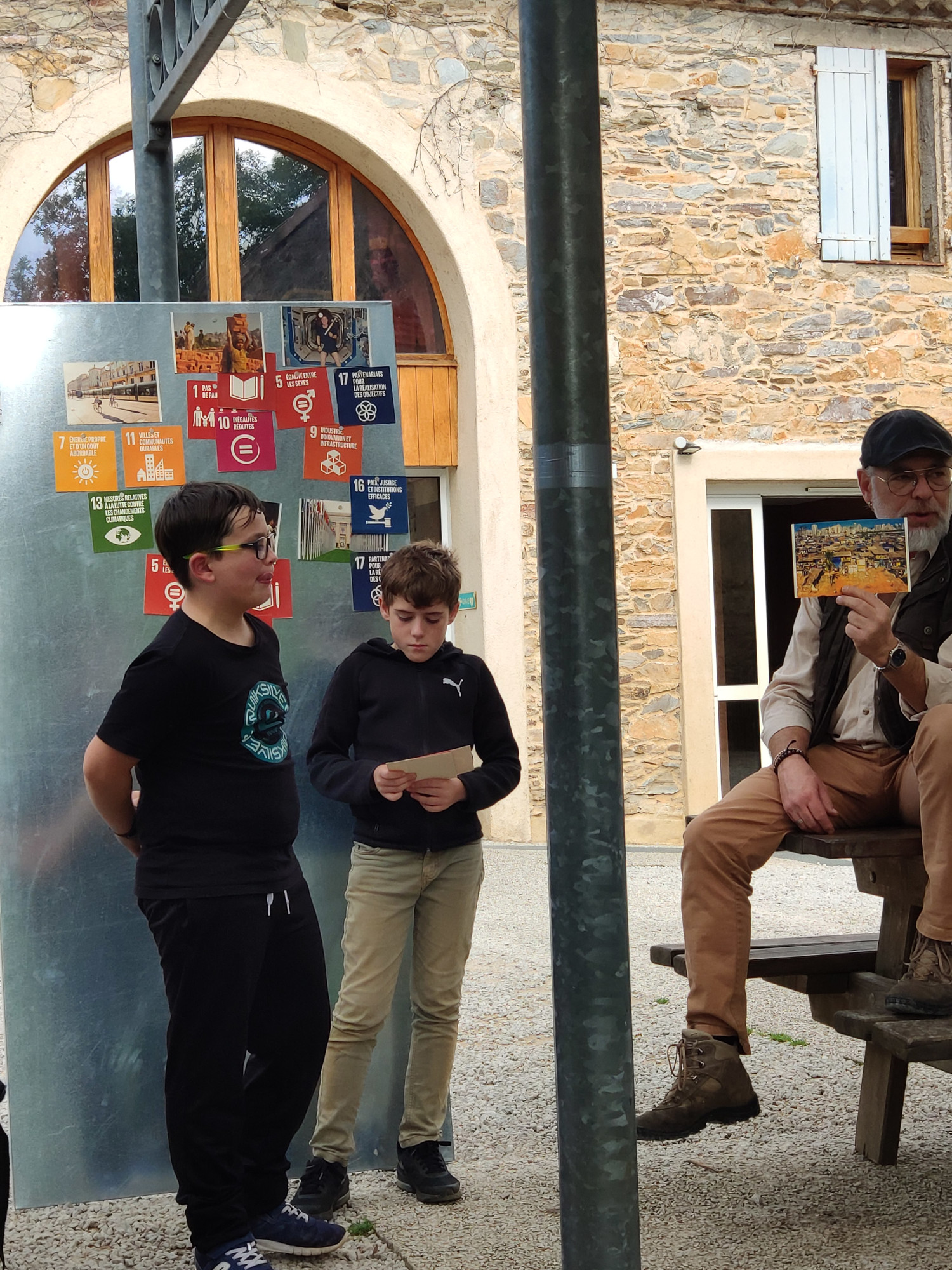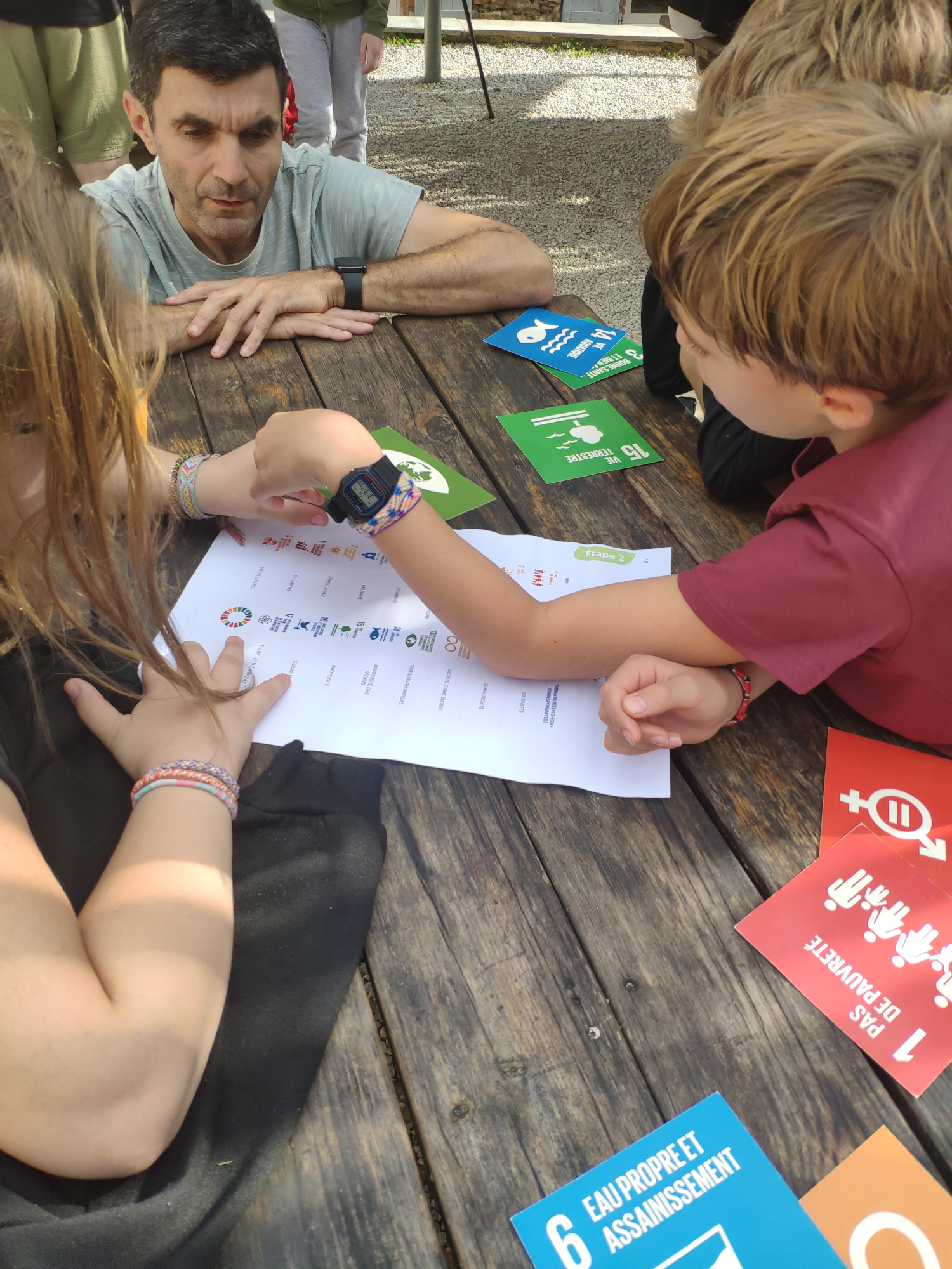 De retour au centre de La Pouzaque, les élèves ont travaillé sur les différents objectifs de développement durable. Ils devaient choisir par groupe, une photo et y associer un ou plusieurs ODD avant de présenter leur choix à leurs camarades.